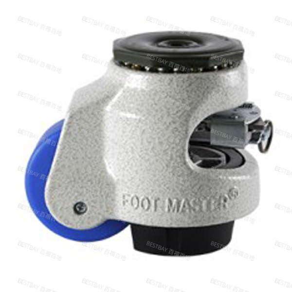 冲压脚轮座,使用强化热处理的双重钢珠槽旋转结构,象牙白铝制壳体,通过一体型棘轮手把调节高度,NBR防震动底座